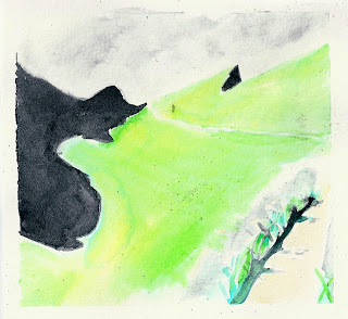 Been a while since last post while I re-orientate myself around the ole studio practice. Though the main focus in the studio so far has been on some new small-scale figure pieces - which will make an appearance soon- at the moment I'm feeling a strong draw towards work which, seems much more open and full of possibility: Imagined spaces and landscapes; familiar but alien monuments. Ambiguous figures have made a reappearance after visiting exhibition of Munch's graphic works. And a lot of sky blue and yellow and CMY combinations.